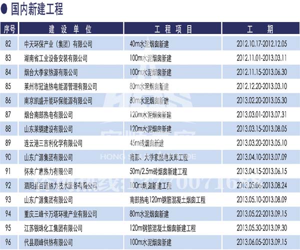 宏順建設工程有限公司是國家批準成立的專業高空作業企業:承攬過(國內.國外)煙囪新建、煙囪防腐、吊機防腐、水塔防腐、管道防腐、龍門吊防腐、儲存罐防腐、煙囪內壁防腐等高空作業工程。具有“不搭腳手架 、 不需要停產”施工特點。